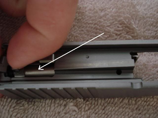 You know, looking at this pic, I have an idea. If your Ripley striker spring tool is not too long, you could insert it in front of that pushed back striker and then blow away with the cleaner or even insert a Q-tip moistened with cleaner to wipe out the channel. What do you think? Doable?Originally posted by kb2wji View Post