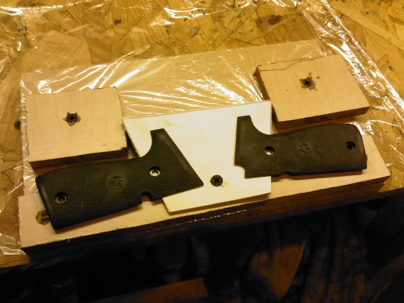 With his it is just using 2 flat boards to press the grips. Since the Kahr's grips wrap around the back I had to put a curve into it. Also, the grips will darken after applying the polyurethane in the end. Well, here's pics of my progress so far. Probably won't get to work on them much more until later in the weekend.