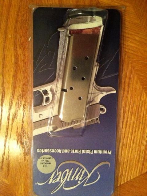 In any case, I have been using this Kimber compact mag in my CW45 for CCW. I installed the Kahr spring and follower and it has worked pretty much flawlessly without any modification. The slide locks back reliably after the last round just as a Kahr OEM Mag would.