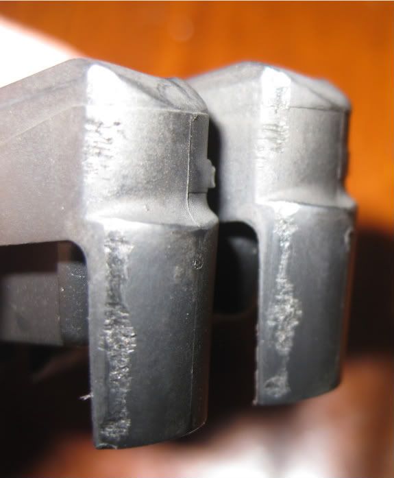 Pics of right front of both followers showing gouging from Mag catch. Did both with and w/o flash.