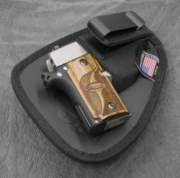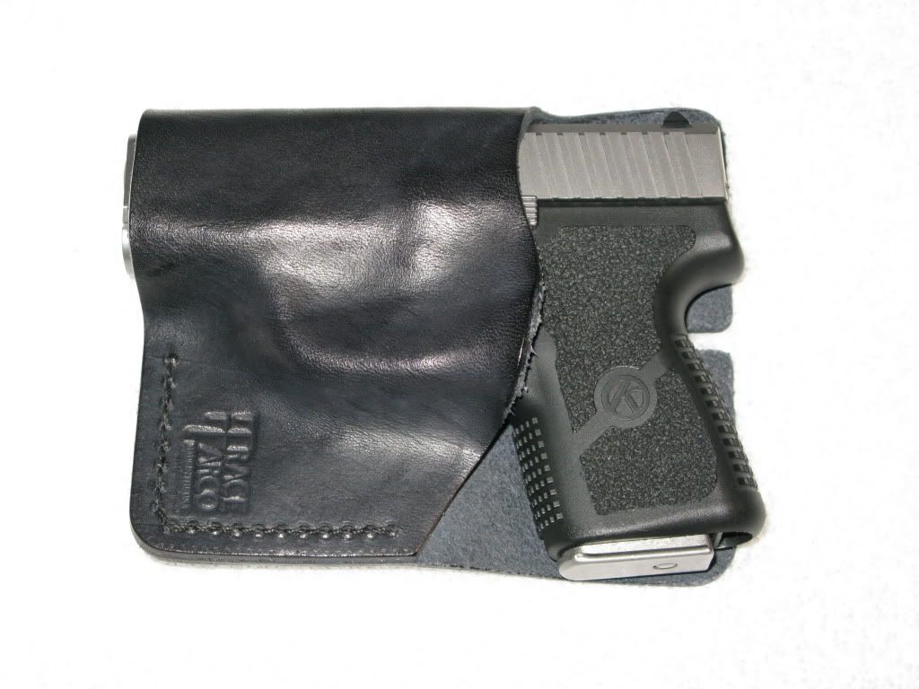 Here is a great price on the Galco Pocket Protector Holster. It is reversed leather, has reinforced top to aid in draw and return of the gun, and to prevent printing. All for less than a Nemesis! I think I'll get one! Have to wait 'til next month, though. Like the nation, I've spent all of my money.