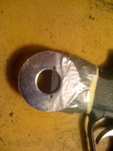 I decided I want the magazine as flush as possible, and I also wanted mag well cut outs. So that worked out nicely together. I used a washer as a guide for my dremel and sanding drum.