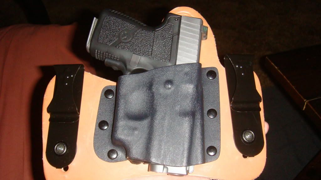 Crossbreed Minituck Natural Horsehide with CrimsonTrace- after a few days break in wearing, with no pistol in it, its amazing now...cant wear the damn thing in the front tho...digs into things and if that trigger ever were to go off--whew dont wanna think about that.
