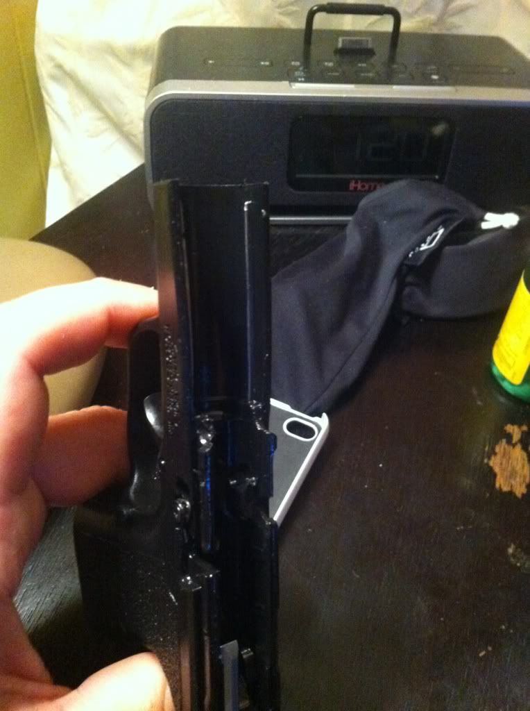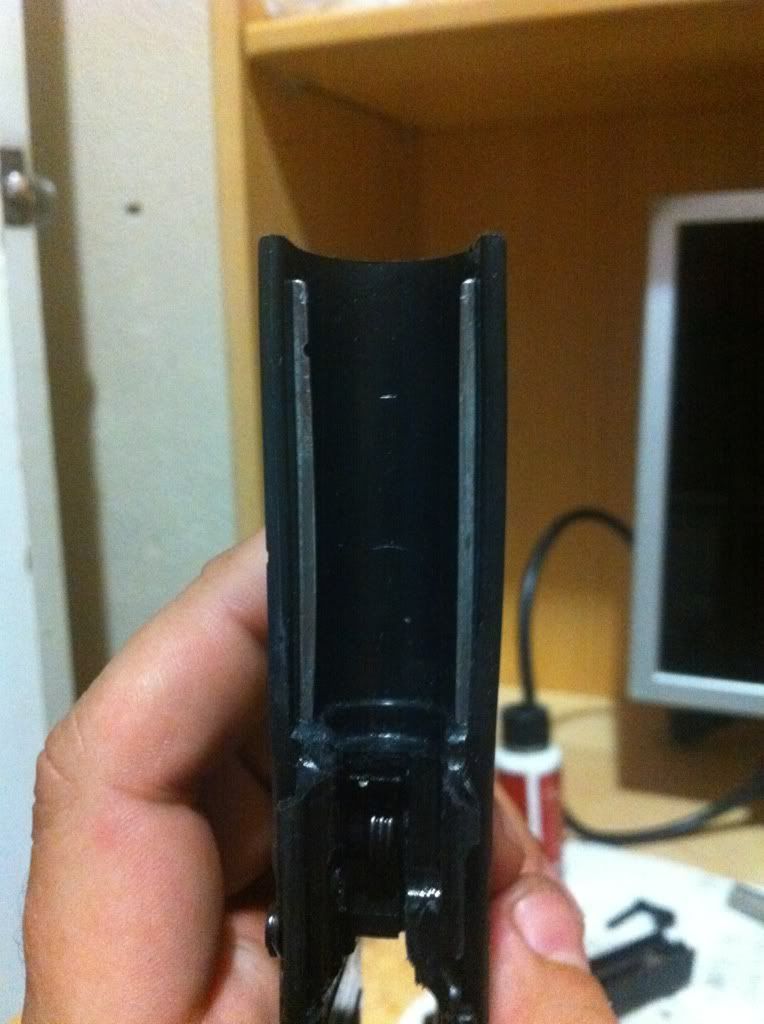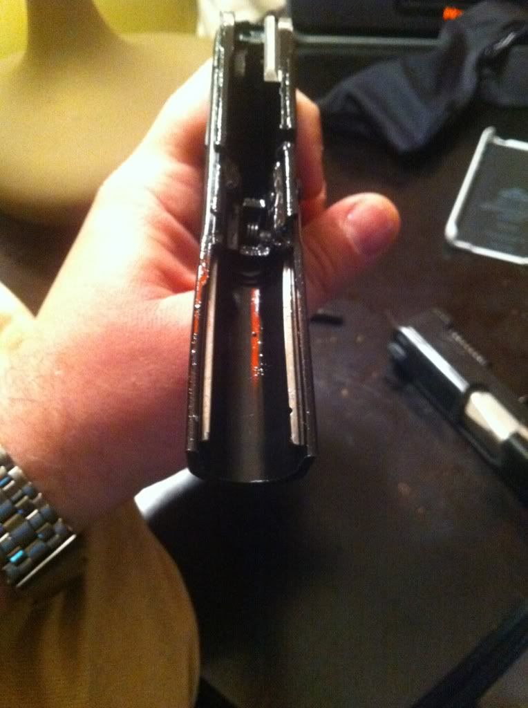 until u shoot it , ur never gonna know. My two cent is that it will not and when the slide allthe way back likeur showing, the barrel can take a different angle as it is also now point up to as it is alock breech gun, so when the slide retracrts the barrels goes into it cycling sequence. Ur front rails have mor eplay in them inside the lside itself than the back two rails . IMO they are the rails that keep the slide in order to, the front merely are guides for the slide to retract. the front rail is a one peace inbedded steel unit, can it get off when molded, I would say it could. Is urs that way. I don't know from the photos . If they are not right the gun will act up for u right off the start.