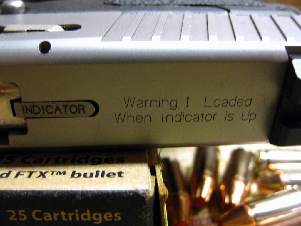 I wish that "loaded when indicator up" slogan was up someone ass. Just defaces the gun IMO. I have been told by kahr that it was necessary to get complaint even. what next ???In spanish maybe...