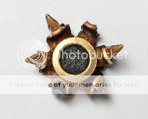 Luckily this round is not known to separate the jacket from the lead completely as that would be bad, It just does it on the petals.