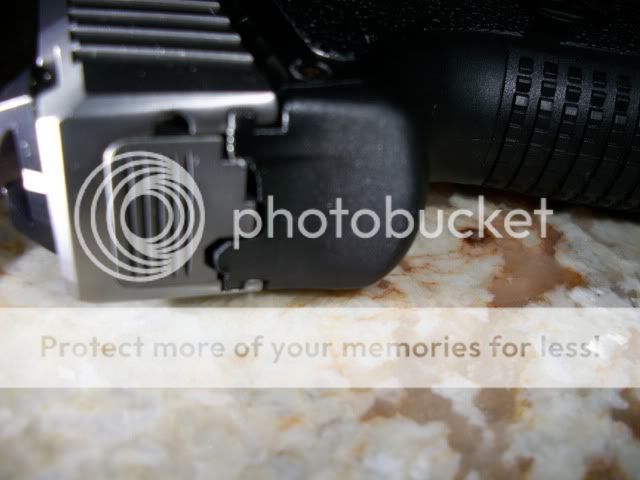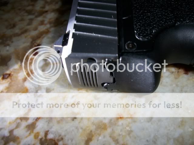 The rear of my pistol out of the box looks a little like this one. The polymer at the rear of the pistol (especially on the left rail) isnt flush with the slide. It's kind of protruding and not flush. Almost like something went wrong in the molding process or it just wasnt a quality mold.