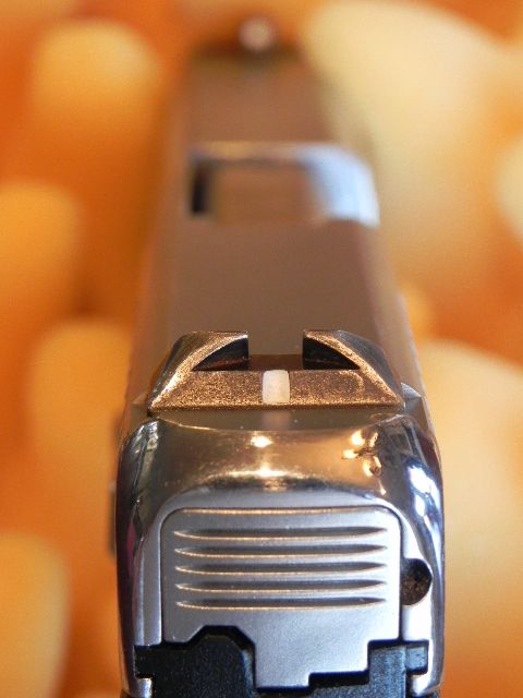 As well, the slide serrations are sharp and uncomfortable to use when racking the gun dozens of times in a practice session. By hand I used 600 grit grey wet/dry sandpaper wrapped around a small flat file to gently round the serrations' edges (1/2 hour).
