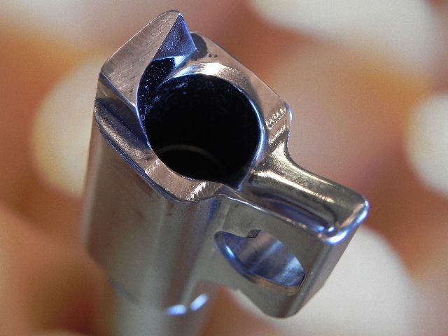 I used a belt sander on the rear of the slide with a very fine grit to change the shape, then a Dremel with progressively finer metal polishing attachments until I got the mirror finish with no scratches (1 1/2 hours).