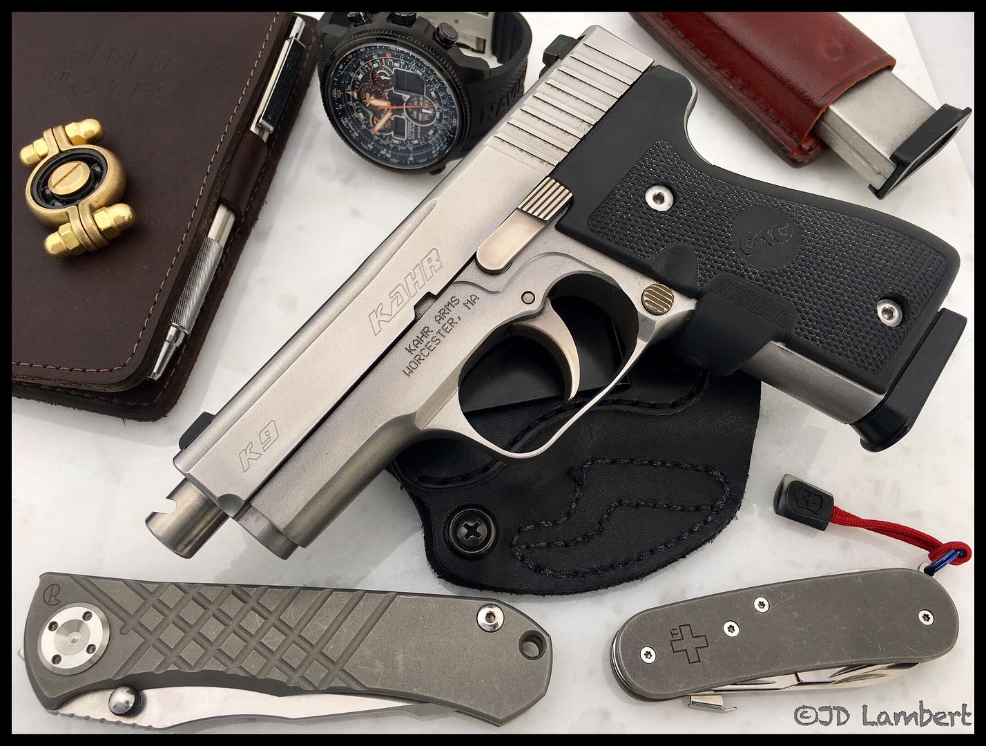 I want to get a second set of grips and sand them down to give the T9 a "bobbed" style, I think it will be easier and more comfortable to carry that way. I also recently got some of the steel base plates for my CW9's magazines and i plan to do the same for my T9 mags. I have already noticed that it prints even less when carrying. My next project is to figure out some way of closing the gap between the bottom of the mag and the grips / mag well... not sure how that will work out though. Sorry you had problems photoman, glad Kahr is taking care of you.“More evil gets done in the name of righteousness than any other way.” - Glen Cook