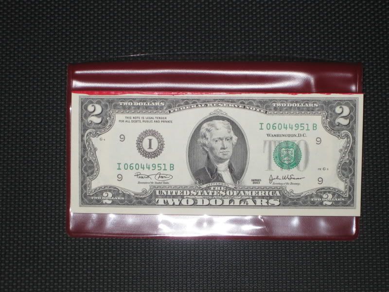 Speaking of $2 bills, several years ago in Las Vegas I got this checkbook-size packet of fifty sequentially numbered bills at Caesars Palace. They're stuck together like a stickynote pad. Pretty neat souvenir for $102: