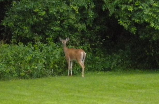 I was able to get within about 60' by sneaking down the driveway beside the garage where she couldn't see me.