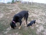 Zeus We rescued last Sept. He just turned 1 y/o christmas eve 2010. He is waiting for that growth spirt that takes Him to His big sister Zelda ( Our 3y/o female 97lb Rottie ) size LOL