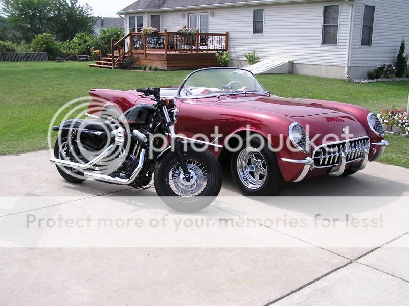 Not sure that 883 IRON sporster can take that 6 cylinder though, unless it is a 1200 then a different race all toghether. looks like that vette is far from anything original. certainly cool looking though