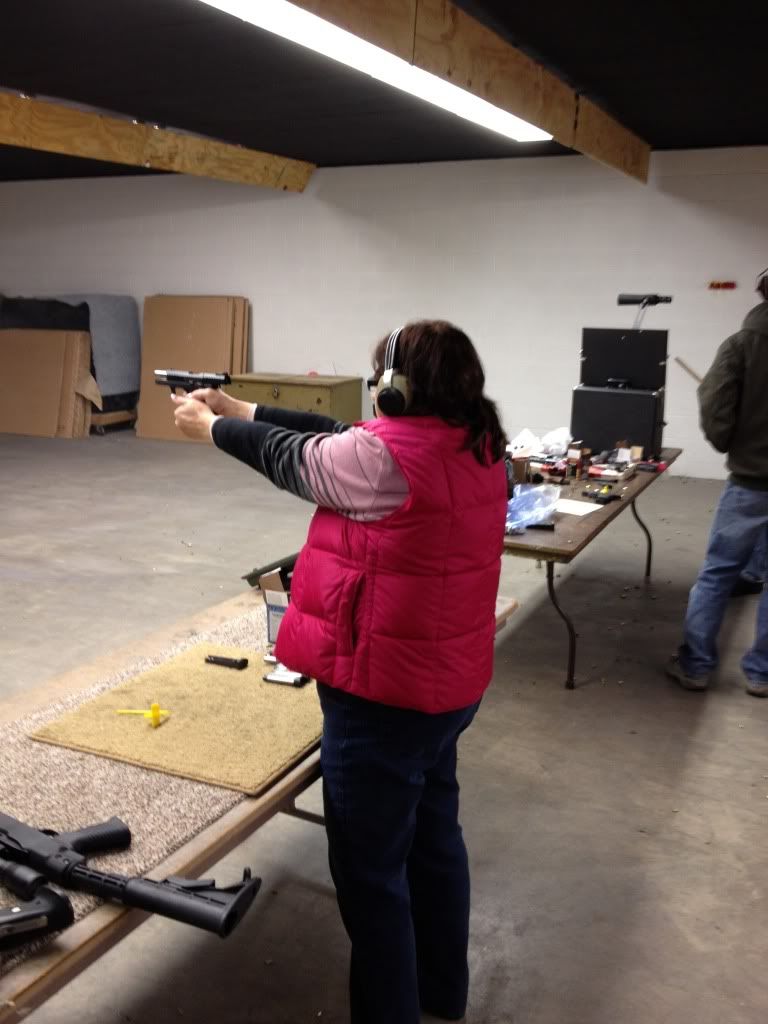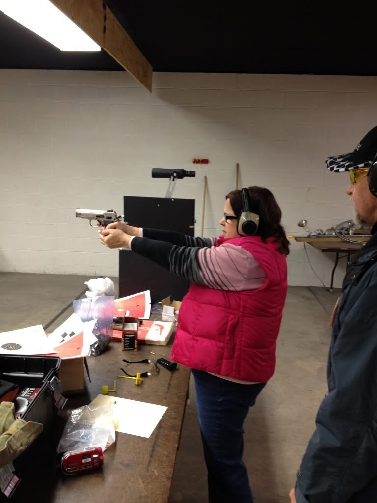 My wife had only ever shot a .22 6 shooter once before. Went through all the safety rules and correct stance, grip, sight picture, etc.