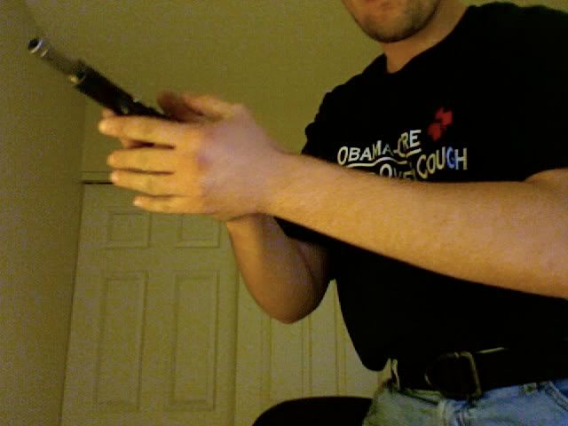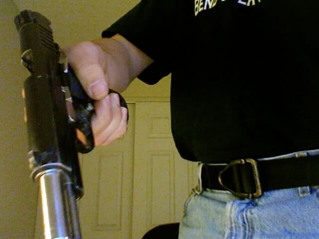 First, the proof that I'm not cheating - my thumb can't get to the mag release