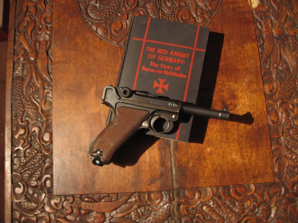Lugers were farly commonplace in the 20s and 30s, this one is a 1918 DWM (a gift from my wife, the best!). With a popular book of the day.