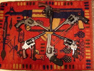Here are my .45 ACP handguns, my Webley is 1918 and the Enfield is 1924, both converted But fortunately they both shoot great with my .45 Auto Rim target load. The other pistols are a S&W 1917, Colt 1917, S&W 1937 (a 1917 made for the Brazillian Navy) and a S&W 625, all but the 625 are Zoot candidates.
