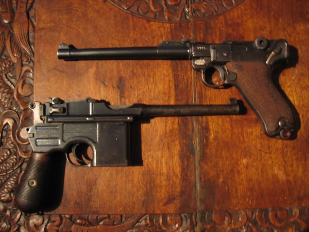 Both original. The LP08 is matching except for the magazine, its a 1917 DWM. I have a repro shoulder stock and holster set for it. The Mauser C96 is prewar with an original non matching shoulder stock. As a present my wife purchased me a P08 1917 DWM as a mate a few years ago.